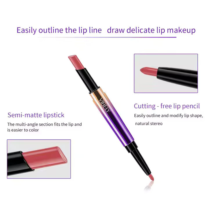 Soft Blur Velvet Lipstick – 2 in 1 Luxury Lipstick & Lip Liner (Korean Gradient Effect)